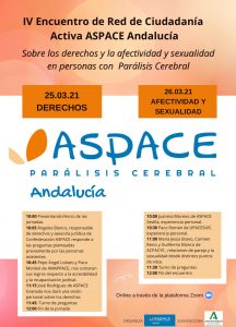 El primer día, 25 de marzo, estará dedicado a los derechos y Ángeles Blanco, asesora jurídica de Confederación ASPACE, responderá a las dudas generadas tras el trabajo de los últimos años. El día finalizará con ponencias de personas que contarán su experiencia.